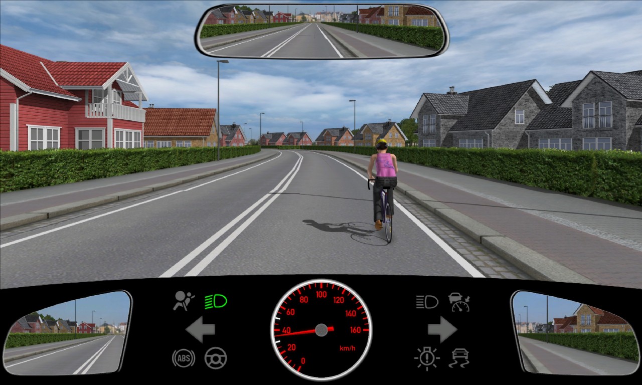 Med vores system kan du nemt prøve teoriprøven online og øve realistiske situationer som denne, hvor overhaling og afstand til cyklister testes. Formålet er at give dig en tryg og genkendelig træning før den rigtige teoriprøve.