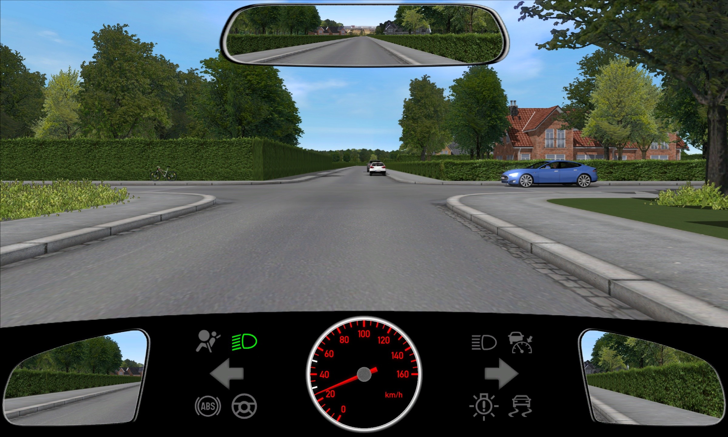 Denne kørekort teori test træner dig i højrevigepligt og korrekt adfærd i ubemarkede kryds. Her er det vigtigt at identificere, hvem der skal holde tilbage, når du fortsætter ligeud på en mindre vej.