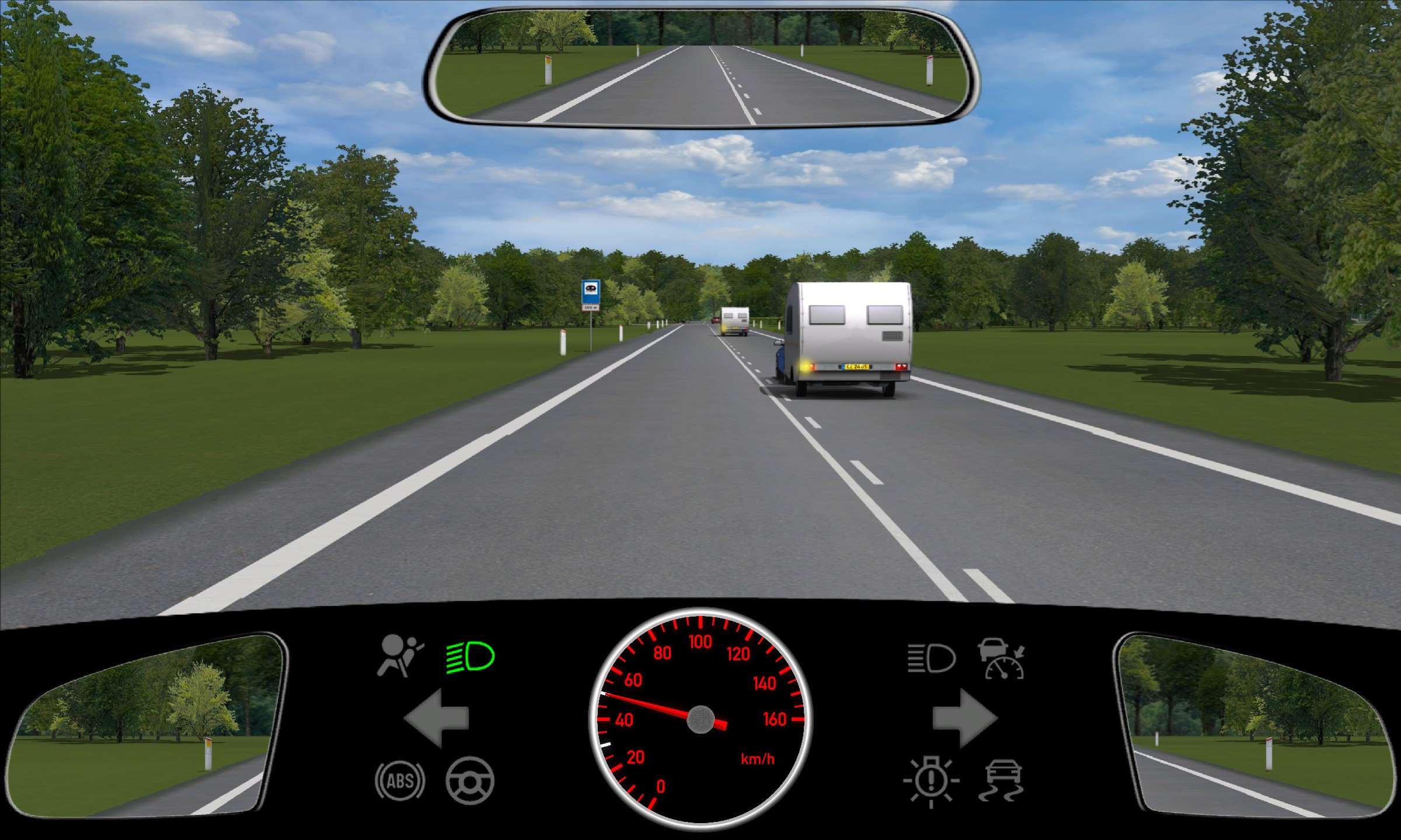 Denne teori test bil-opgave handler om korrekt håndtering af overhaling. Når forankørende sætter farten ned og giver tegn til venstresving, skal du reagere med omtanke og undgå risikable manøvrer.
