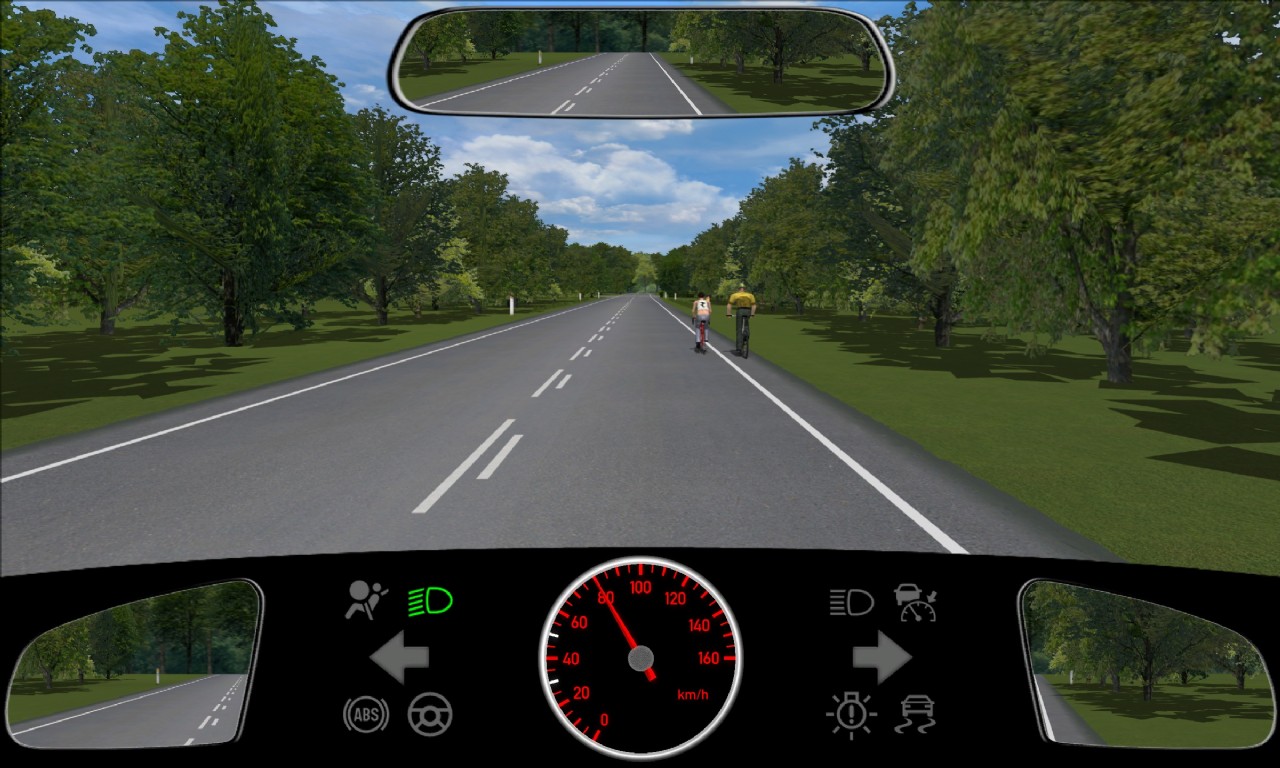 I denne teoriprøve træning lærer du at vurdere situationen korrekt, når du skal fortsætte ligeud og samtidig forholde dig til cyklister og kørebanestriber. Her gælder det om at skabe god afstand, orientere sig korrekt og overhale på et sikkert tidspunkt.