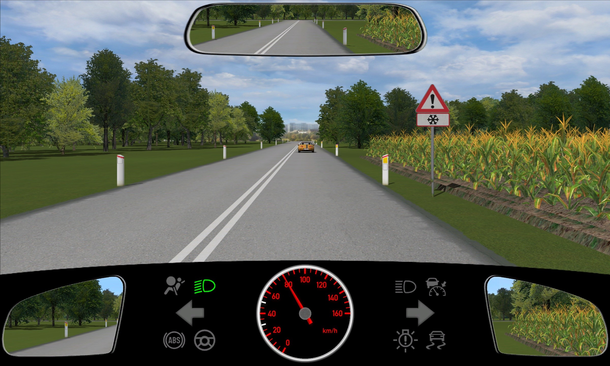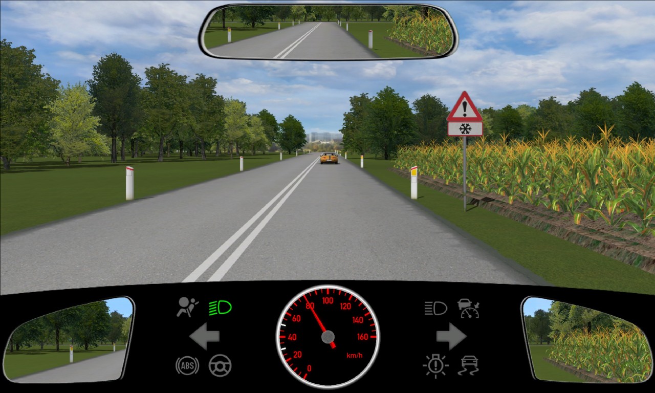 Dette spørgsmål fra en teori test til kørekort handler om, hvordan du skal reagere på både vejforhold og advarselstavler, når du skal fortsætte ligeud af vejen.