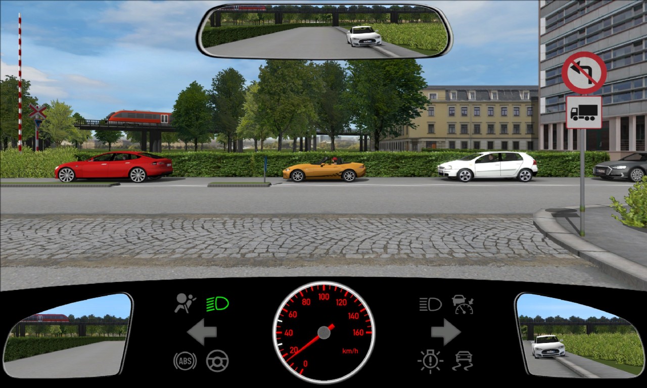 Denne gratis kørekort test viser et typisk teorispørgsmål, hvor du skal vurdere vigepligt og korrekt adfærd, når du vil svinge til venstre i et kryds.