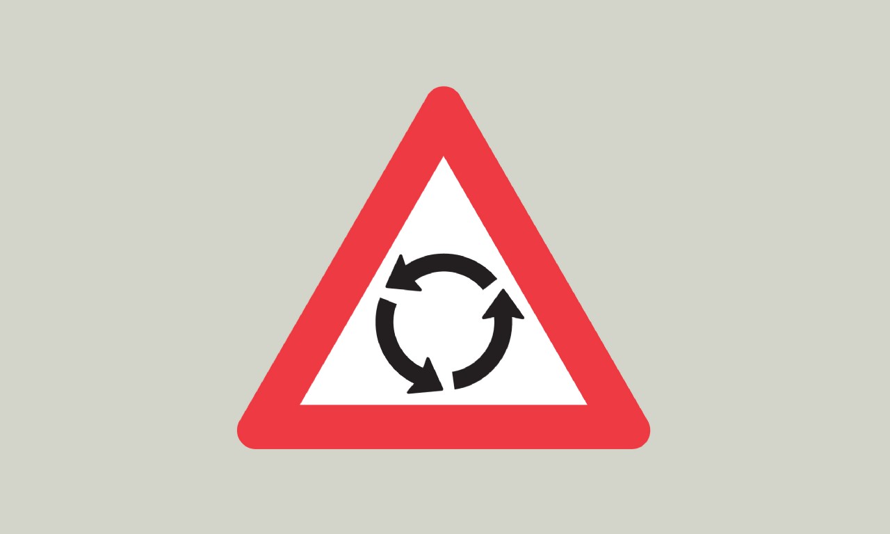 Ja, tavlen advarer at der forude kommer en rundkørsel.