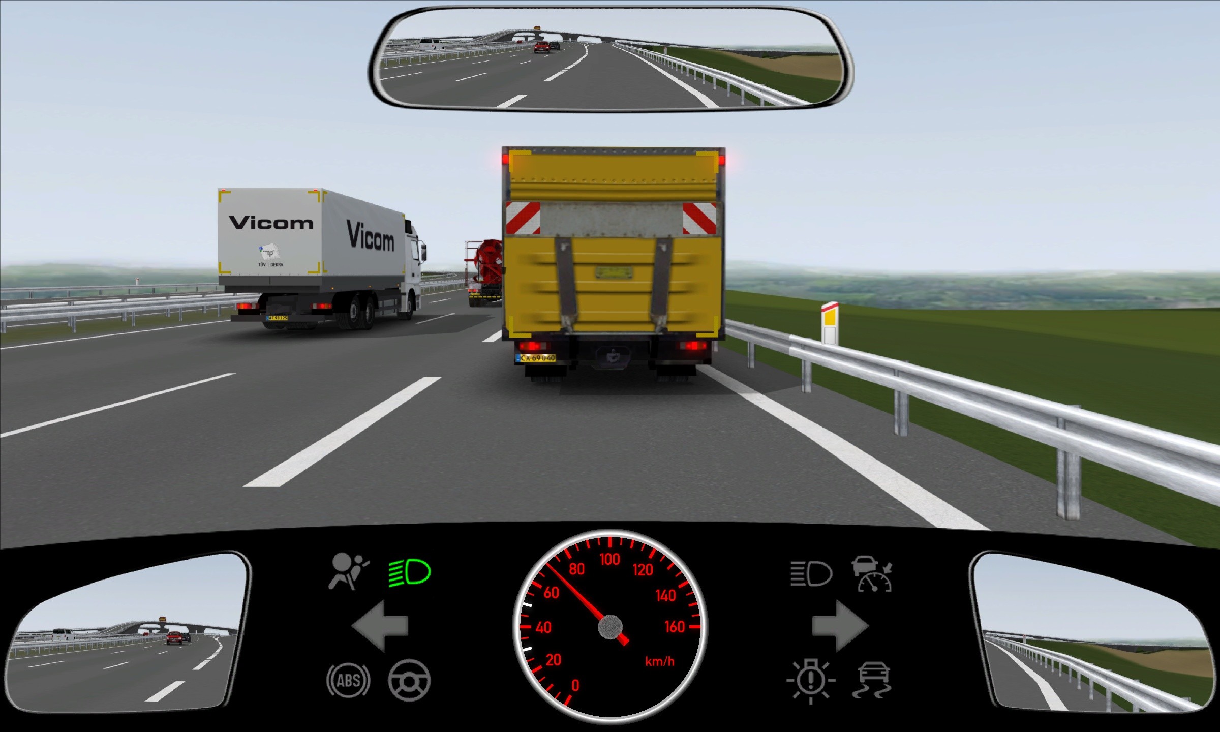 Du er på vej ind på motorvejen ad denne tilkørselsbane. Der kommer ingen kørende i den nærmeste bane på motorvejen. Lastbilen foran bremser. Hvad gør du?