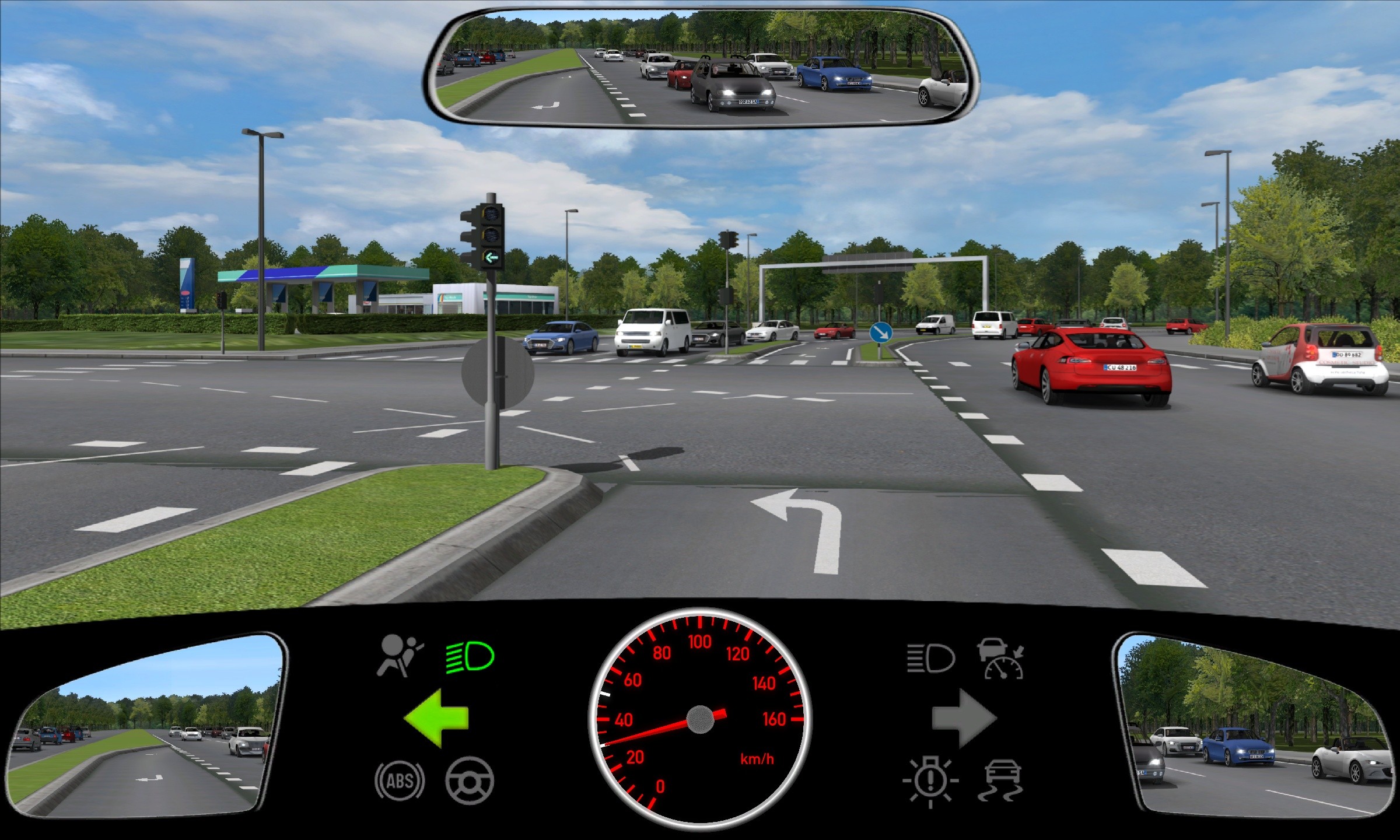 Her får du et realistisk eksempel fra vores digitale teoriprøver til kørekort, hvor du skal vurdere korrekt adfærd ved venstresving i et reguleret kryds. Formuleringen og opbygningen svarer til det, du møder i undervisningen og de officielle prøver.