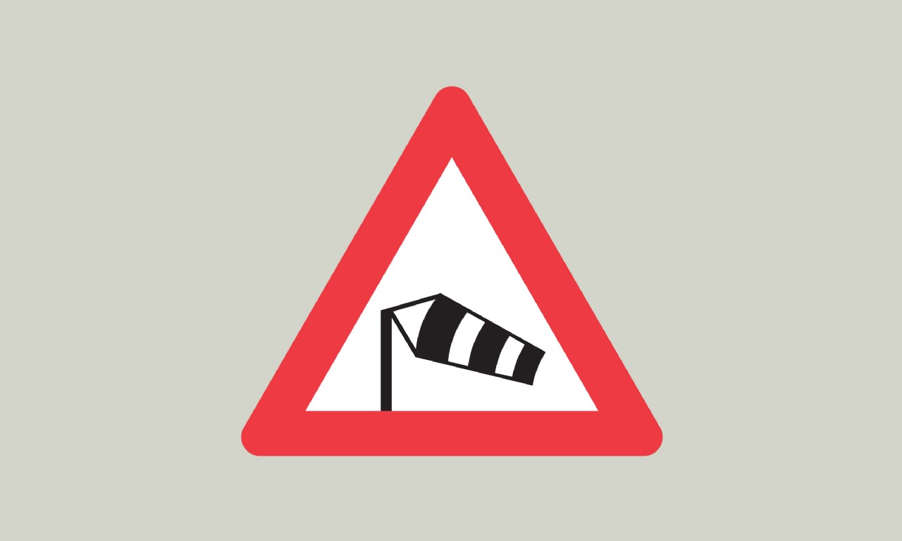 Ja, tavlen hedder sidevind. Her skal du holde en passende lav hastighed i blæsevejr, specielt hvis du kører i et vindfølsomt køretøj.